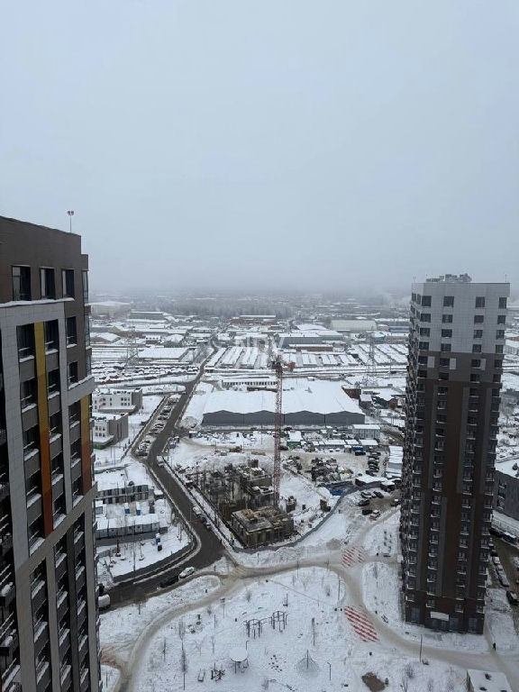 Квартира расположена на 24-м этаже монолитного здания. Высота потолков составляет 3,73 метра, что создает ощущение простора и свободы. Из окон открывается вид как на улицу, так и во внутренний двор.